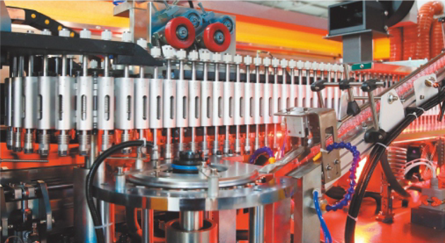 采用伺服電機(jī)驅(qū)動環(huán)形鏈條; 采用伺服單通道上胚; 采用鋁合金制造的高壓吹氣組合閥,可有氣體回收裝置,減少能源消耗,保護(hù)環(huán)境; 采用PID恒定控制烤箱瓶胚加熱和風(fēng)機(jī)排風(fēng)。